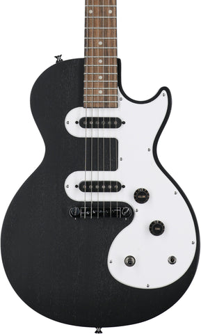 The Les Paul™ Melody Maker™ E1 is the most affordable two-pickup Les Paul ever made with a slim lightweight Poplar body with powerful Epiphone Ceramic pickups. Available in six exclusive colors: Ebony, Heritage Cherry Sunburst, Pacific Blue, Sunset Yellow, Turquoise, and Vintage Sunburst. Optional gig bag or hard case available. (Previously called Les Paul SL™)