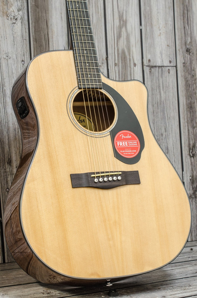 Combining powerful onboard electronics—including a built-in tuner—with great tone and easy playability, the CD-60SCE is ideal for beginning to intermediate level players who are ready to plug in. Featuring a Venetian-cutaway body for easy upper-fret access, a solid spruce top for increased volume and crisp sound, easy-to-play neck and mahogany back and sides, the CD-60SCE is perfect for the couch, the campfire or the coffeehouse—anywhere you want classic Fender playability and sound.