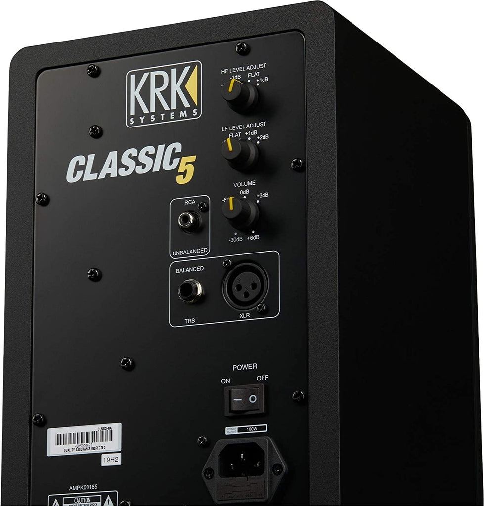 Building on KRK's legacy of sonic accuracy and performance, the new KRK CLASSIC 5 powered studio monitors incorporate over 30 years of innovation from the world's leading studio monitor manufacturer. Borrowing concepts from previous ROKIT lines—some of the most used studio monitors in the world, the CLASSIC 5 defaults to a new flat frequency solution towards more critical listening—translating into more accurate mixes. With the optional ability to engage the +2 dB KRK Bass Boost, the CLASSIC 5 can also provide the enhanced bass response and sound that music creators around the world have loved for years.